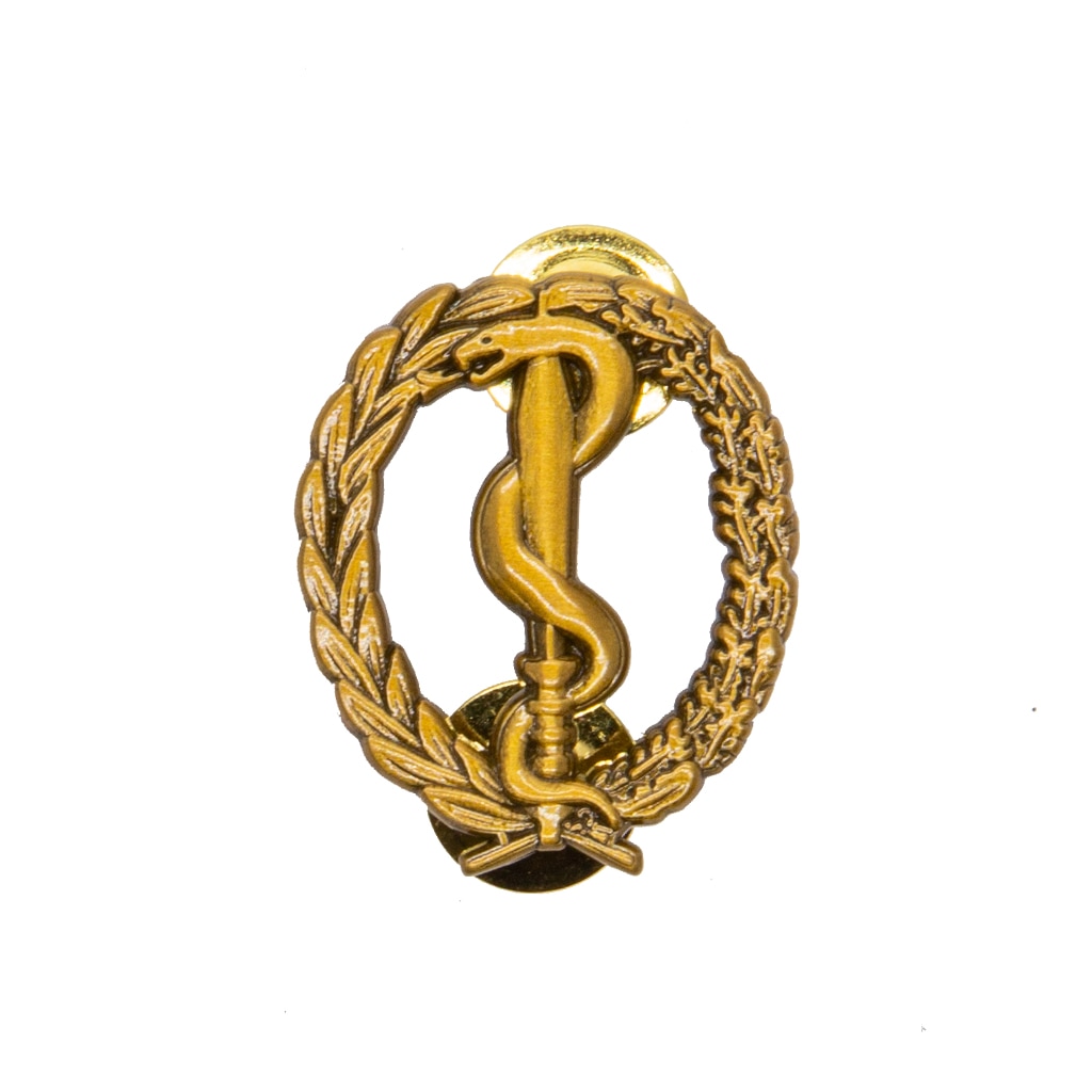 Miniatuur embleem voor Combattanten met een Geneeskundige Neventaak (CGN) en ontworpen voor op het avondtenue (AT) of avondbaadje. Sinds medio 2023 zijn deze militairen herkenbaar door dit embleem. Het metalen embleem is bewerkt met veel detail en afgewerkt in brons (gewondenhelper), zilver (medic) of goud (NSOCM). De pins aan de achterzijde zorgen voor een soepele bevestiging op het tenue.