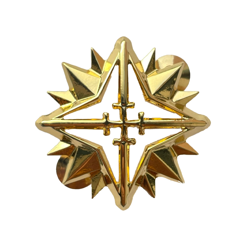 De speld, met de vier herkenbare zwaarden, is afgewerkt in goud. De pins aan de achterzijde zijn ge-adoniseerd voor een goede en blijvende kwaliteit.